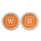 Pumpkin Orange White Framed Initial Monogram Cufflinks