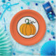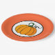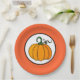 Party paper plate shown with a cute pumpkin print. Use for the holidays Halloween or Thanksgiving.