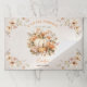 Neutral pastel and elegant fall baby shower tearaway paper placemats in boho farmhouse style, featuring two pumpkins surrounded by flowers in soft orange, cream, and green with autumn vintage vibes on the canvas background. They are easy to tear off the pad, heavy enough to protect your table, and add the perfect touch to your party. Easily personalize the text or leave it blank. - Kate Eden Art