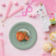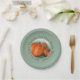Perfect for Thanksgiving dinner, this paper plate with easily personalized circular text alsof is printed with my original artwork created in soft pastels picturing three pretty orange pumpkins set in an autumn garden patch.