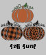 Perfect for fall, this design features three pumpkins; burnt orange, buffalo plaid and a faux animal print. The text on the bottom can be customized.