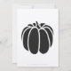 Bring touch of autumn elegance to your event with this wedding invitation featuring a black border on the right side, decorated with a pattern of fall pumpkins and oak leaves. The left side of the card has plenty of space for all of the details for your special event with some sample text in place that can be customized to fit your needs. A large pumpkin in black finishes things off on the back to create a fun final note. Be sure to check out the other products in the Pumpkin Patch in Black set to create a truly coordinated look for your event.