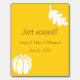 Give your guests a tasty treat to take home at your fall-themed wedding or special event with these drink mix pouches, featuring a white oak leaf in the upper right and a pumpkin in the lower left corner on a bright yellow background. Customize the greeting, name, and date text to create a personalized favor for your guests, wedding party, or anyone else who could use a treat. These drink mixes come in multiple flavors including hot cocoa, lemonade, margarita, coffee, and tea.