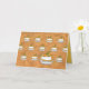 This whimsical card features thirteen wide-eyed pumpkins wearing masks and sitting in pie dishes. Inside says, "From the whole pumpkin patch, we wish you a healthy and happy Thanksgiving.” Great from one family to another, or from a group of coworkers, or staff, to boss, or customer.