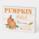Give your house a fall farmhouse feel with this wooden box . It has 2 pumpkins and an autumn leave .It also reads :"Pumpkin Patch This way --->" . Feel free to replace this text with your own using the template .