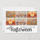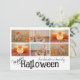 A little one dressed as a pumpkin steals the spotlight in a series of heartwarming autumn scenes. Nestled among hay bales and oversized gourds, each photo radiates seasonal joy and playful innocence. The warm orange-and-white plaid accents and cheerful pumpkin motifs frame the collage with festive flair, capturing the essence of Halloween magic. This design is fully customizable.