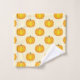 This towel features Destei's pattern of cartoon illustrated pumpkins on a light yellow background color.