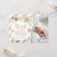Share your gratitude in style with this neutral fall pumpkin photo thank you card. Adorned with watercolor pumpkins, cream florals, and autumn leaves, this cozy design features space for your baby’s adorable picture — perfect for thanking guests after a first birthday or fall-themed baby shower. A timeless way to capture your little pumpkin’s charm!