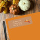 Some cute fall brown family return address labels featuring a pumpkin pie slice doodle . Use the template to personalize it with your family's name and address .
