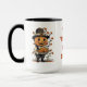 Celebrate Thanksgiving in whimsical style with this festive mug featuring pumpkin-headed pilgrims dressed in traditional attire. One carries a golden roast turkey while the other holds a bundle of harvest corn, surrounded by cheerful autumn flowers. Perfect for sipping coffee, tea, or cocoa during cozy fall mornings, this mug brings a touch of humor and holiday spirit to your table.
