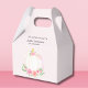 This pretty baby girl's baby shower favor box is decorated with lovely watercolor pink pumpkins, roses, and green foliage on a pale pink background.