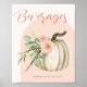 Serve drinks in seasonal elegance with this Falling in Love with Baby “Beverages” table sign. Designed with a soft blush pink arch framing a creamy ivory background, it features a white watercolor pumpkin surrounded by eucalyptus leaves, blush roses, pampas grass, and pheasant feathers. The warm terracotta orange text reads Beverages, with customizable text underneath for drink station details or a personal message. Perfect for a girl’s fall baby shower, this sign coordinates beautifully with the entire Falling in Love with Baby collection to create a refined, cohesive look.