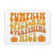 This delightful fall design captures the essence of the season with the phrase "Pumpkin Spice and Everything Nice" presented in a bold, retro-inspired font. The text is arranged in a playful, wavy layout that gives the design a dynamic and energetic feel. Each word is filled with warm autumnal hues, including shades of orange, yellow, and brown, which evoke the cozy and inviting atmosphere of fall. The design is further embellished with charming illustrations of pumpkins and a single autumn leaf, adding a touch of seasonal flair.
