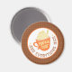 Fun Fall magnet features pumpkin spice mug typography badge with a brown grid background.