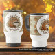 Pumpkin Spice Coffee Art and Autumn Leaves Pattern Travel Mug