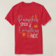 My 11 yo wore adult XL (5’7” 165#). The 8yo is small framed. She wore adult small and tied it in the back. Grandma wore adult large with long sleeve shirt underneath. Tall girl adult medium. Dark haired male adult large. Good quality dark Heather gray, Gildan brand shirt. -it was next up from basic choice and cost about $20 per shirt. Not too thick or thin. Washed and dried well, no major shrinkage. Not see-through. Can wear a bra under it fine. Screen print is just as shown and well done, front and back.