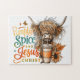 Peaceful, colorful design featuring a fall / autumn scene with a coffee, fall flowers, fall leaves and a bull. The colorful inspirational text reads: "Pumpkin spice and Jesus Christ". This design is available on a wide variety of products.
