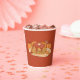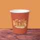 This cute reddish-brown paper cups with a pumpkin spice pancakes illustration will be perfect for any fall party . Pick your cup size and add a lid if you wish . Look for matching paper plates .