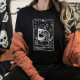 Get into the spooky spirit with our Pumpkin Spice Tarot Card Halloween T-Shirt! This stylish tee is the ideal choice for showcasing your adoration of pumpkin spice during the Halloween season.