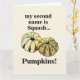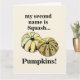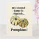 Pumpkin Squash Funny Pumpkins Card original design by Nisha Prabhu. Bring a smile to your loved ones’ faces with our delightful "Pumpkin Squash" funny pumpkins card! Perfect for any fall occasion, this card is ideal for sending warm wishes, invitations, or just a whimsical note to brighten someone’s day. Featuring playful illustrations of lively pumpkins and squash along with a humorous message, this card captures the fun spirit of autumn and makes for a memorable greeting. Whether for Halloween, Thanksgiving, or just to say "hello," this card is perfect for sharing your seasonal greetings or for any special occasion in the fall! Celebrate the season of harvest and joy with our Pumpkin Squash funny pumpkins card. It’s a delightful way to connect with friends and family during this festive time of year!