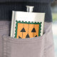 Cute Jack-O-Lantern pumpkin faced stamp Halloween decor. Pumpkin face is orange with green trim. Design created by Black Brook Photography with graphic from Pixabay September 2014.