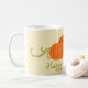 Pumpkin Swirls Halloween Mug featuring a trio of pumpkins and a cascade of swirls and dots. This fun mug with a wraparound design is perfect for drinking your cold weather beverages with a bit of Halloween flair! Easy to customize, simply add the personalized text of your choosing. Fonts and text colors may be changed to suit your preferences and the design elegant may be moved/resized to accomodate more or less text.
