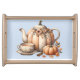 Pumpkin Teapot with Fall Florals Illustration Serving Tray