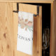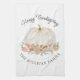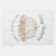 This Happy Thanksgiving kitchen towel features a rustic watercolor white pumpkin and fall foliage with stylish script typography.