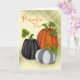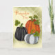 Celebrate the beauty of autumn and the spirit of Halloween with this festive card. The design features three decorative pumpkins, accented with warm seasonal tones that capture the essence of fall. Perfect for sending seasonal cheer, it highlights both the cozy harvest season and spooky Halloween charm.