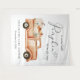 An autumn-themed photo backdrop tapestry and welcome sign for your baby shower with "a sweet little pumpkin is on its way" in a mix of modern typography and a script with a heart swash, and watercolors of a terracotta vintage truck carrying orange and cream pumpkins and floral bouquets. Personalize the mother's name and shower date in simple typography. Specify the baby’s gender if desired (e.g., "is on his way").
