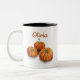 Enjoy your warm drink with a touch of autumn. This sleek coffee mug showcases modern watercolor pumpkins in warm orange hues, accented with a stylish script name. A cozy yet contemporary ode to the season.