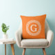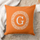 Pumpkin Wht Greek Key Rnd Frame Initial Monogram Throw Pillow