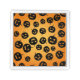 Seamless pattern design with Halloween pumpkins silhouettes on orange background.