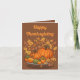 Celebrate Thanksgiving with this greeting card that can be personalize and shows an image of pumpkins and leaves that celebrate the season.