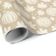 Pumpkins and leaves repeating pattern wrapping paper in light brown.
