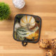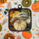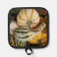 Safely handle baking trays, cookie sheets and muffin tins from the oven with this pot holder with black trim that features a still life photo image of various colors and varieties of pumpkins and squash. Perfect for the autumn season, Halloween and Thanksgiving! Select your pot holder backing style.