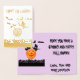 Just in time for Halloween, this design features a silhouette of pumpkins at the bottom. A large orange pumpkin is accompanied by a menacing tree and a ghost lurking behind it. Above, multiple bats take flight. The front side of the card showcases the design in foil. You can customize the background color on the inside of the card. Simply replace our names with yours on the inside to personalize it.