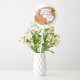 This beautiful autumn-themed wreath of branches, fall leaves, pumpkins, and deep red flowers will really stand out on your Thanksgiving table. This design features a circular wreath of branches adorned with yellow oak leaves, green maple leaves, red ash leaves and pretty vines as well as orange pumpkins. "Happy Thanksgiving" is nestled in the center of this design along with a place for you to add your family name and the year.
