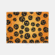 Seamless pattern design with Halloween pumpkins silhouettes on orange background.