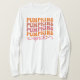 The "Pumpkins Spice" design is a fun and vibrant representation of the beloved fall flavor, pumpkin spice. The design prominently features the word "PUMPKINS" repeated five times in a bold, retro-style font with rounded edges, each instance stacked on top of the other. The repetition emphasizes the word and makes the design instantly recognizable as a celebration of all things pumpkin.