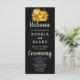 Turning to the back of the program, you'll find a thoughtfully curated list of the wedding party in classic black and gray. The predominantly simple block font ensures clarity and readability, maintaining a clean and elegant aesthetic. Adding a touch of whimsy and personalization, the words "Welcome," "Ceremony," and "Wedding Party" are presented in a pretty decorative script font. These scripted elements add an extra layer of charm and individuality to the program, creating a keepsake that reflects the unique spirit of your special day.