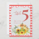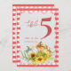 Celebrate your fall wedding in charming rustic style with this autumn-themed table number card. Featuring watercolor pumpkins, sunflowers, and a cozy red gingham border, this card blends country charm with seasonal elegance. Personalize with your names and wedding date for a beautifully coordinated reception table setting. Perfect for barn weddings, harvest celebrations, and Thanksgiving weddings.