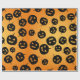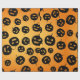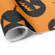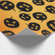 Seamless pattern design with Halloween pumpkins silhouettes on orange background.