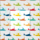 Ideal for baby boy gifts and blankets, this pattern features bold classic colors like red, blue, green, yellow and orange Osprey military aircraft in a side view with its tilt rotors in three different positions on a white background.