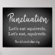 Punctuation Commas Funny Chalkboard Poster. White typography design on black chalkboard.