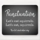 Punctuation Grammar Funny Mouse Pad. Let's eat squirrels, white text on chalkboard. A humorous gift for English teachers, authors, writers, bloggers, editors, publishers, poets, indies, and other bookish people. Great for bookshops, coffee shops, book fairs, author events and workshops, classrooms, writer's retreats, giveaways, and more. Text, fonts, and colors can be customized by you with the tools provided in Zazzle's customization menu. Please visit our store, Bookles, to discover our growing range of products, and please contact us if you require any assistance
