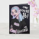 Celebrate the young punk in your life with this cute birthday card by JessicaAmber. Features a cartoon illustration of a teen girl, with pale blue dyed hair, holding a pink game controller. Text on front says 'OMG! You're 16!' Which you can change to any number you want. You can edit the black background to a color of your choice. You can also customise the message inside. A great card for your rebellious daughter. ⭐ For more birthday cards, visit my store zazzle.com/jessicaamberartist ⭐ For custom orders, message me on Zazzle