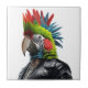 Funny Punk Rocker Parrot with mohican hairstyle wearing a leather jacket.