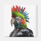 Funny Punk Rocker Parrot with mohican hairstyle wearing a leather jacket.