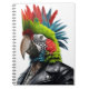 Funny Punk Rocker Parrot with mohican hairstyle wearing a leather jacket.